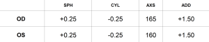 If your prescription does not have “Right” and “Left” labelled for you, you may not know which eye the prescription belongs to. However, you may notice the prescription labelled “OD” and “OS” on your report. These are Latin abbreviations to indicate right and left side of your eye. “OD” means “Oculus Dexter” which represents the Right eye and “OS” means “Oculus Sinister” which represents the Left eye.